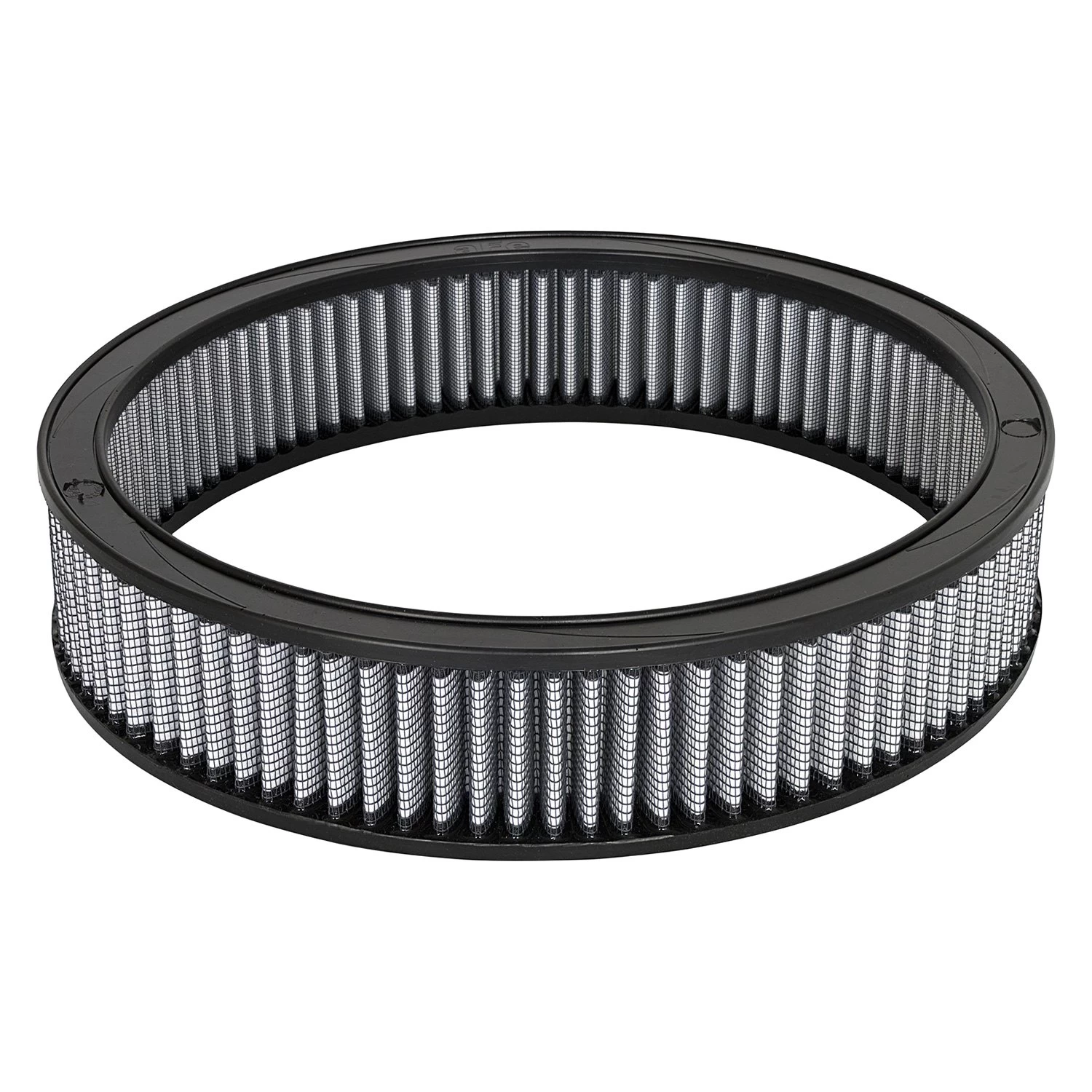 Direct Fit Magnum Flow™ Pro Dry S Round Air Filter (Semi Truck) by aFe®. Constructed with 100% polyurethane on top and bottom, this high flow “oil-free” OE replacement performance filter will outflow stock paper filter for improved horsepower and torque. Three layers of progressively finer mesh synthetic media provide maximum convenience and easy maintenance. Washable and reusable for multiple cleaning cycles, the tall open evenly spaced pleats provide excellent dust holding capacity for longer service cycle between cleanings. Integrated urethane bump seal with a built in metal support ring insures a tight, no leak seal over the life of the filter.