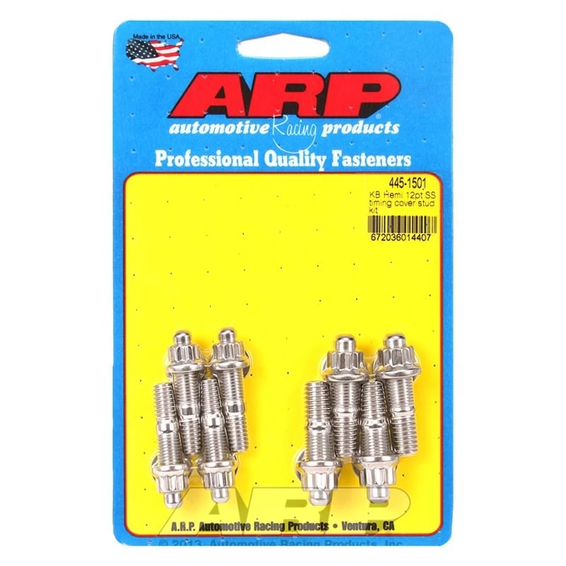 Timing Cover Stud Kit by ARP®. The engineers at ARP spent quite a bit of time developing these highly effective, unique oil pan studs. They’re designed to make it as easy as possible to install a pan and seal it properly. You’ll note that the studs have a radiused bullet nose that serves to locate the pan rails, then allow the nuts to be easily installed without the worry of cross-threading. For those who prefer bolts, ARP’s got you covered, too.