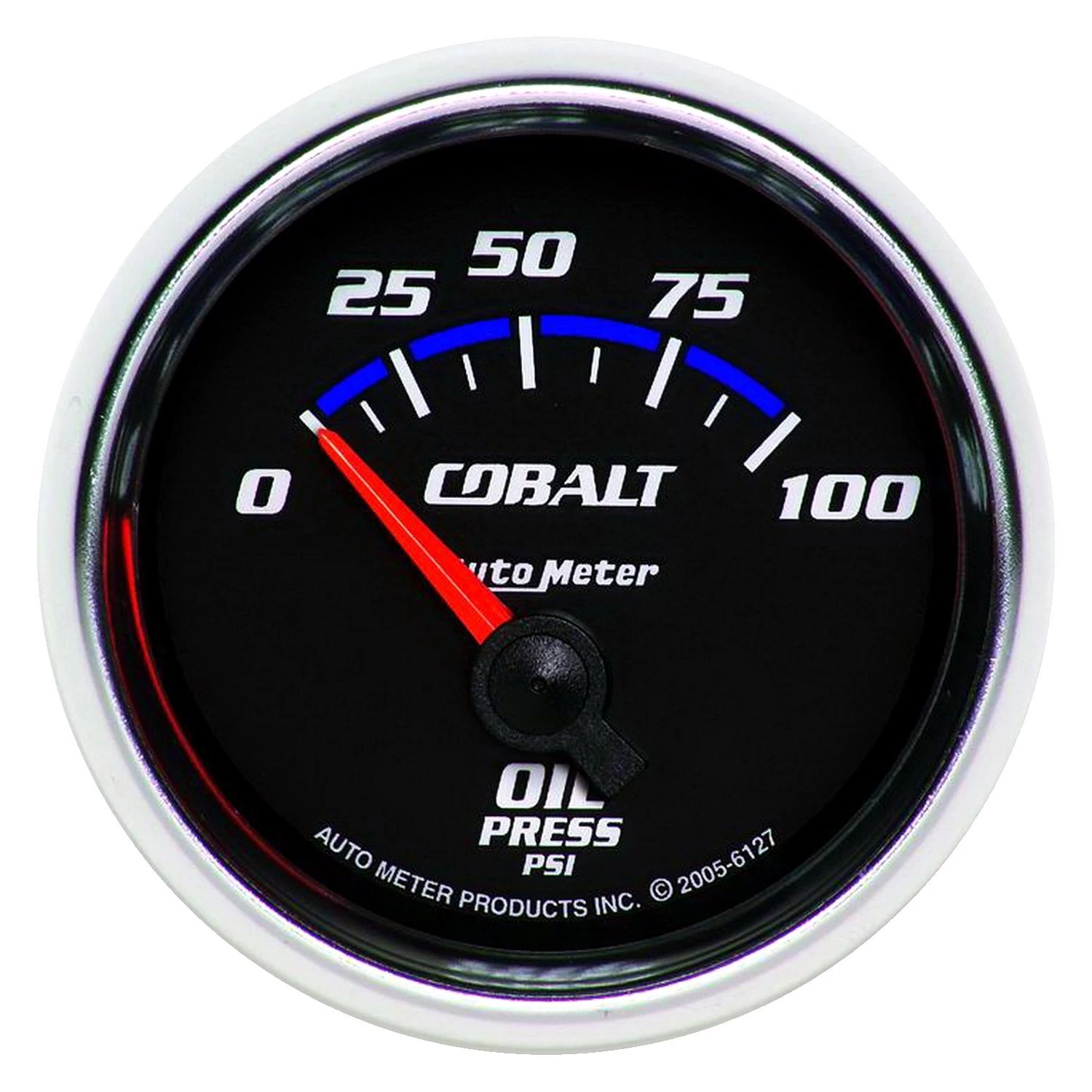 Universal Cobalt Series Oil Pressure Gauge (6127) by Auto Meter®. Size: 2-1/16″. Range: 0-100 PSI. Type: Electric, Air-Core. Quite possibly the most critical vital to monitor, engine oil pressure can mean the difference between making it home and needing to replace the engine. The patented air core meter movement provides the durability and accuracy that you expect from the Auto Meter name. Throughout 57 years of building the world’s best competition instruments, this meter movement has been the engine powering the machine that sets the benchmark. A single wire, 1/8” NPT oil pressure sender is included.