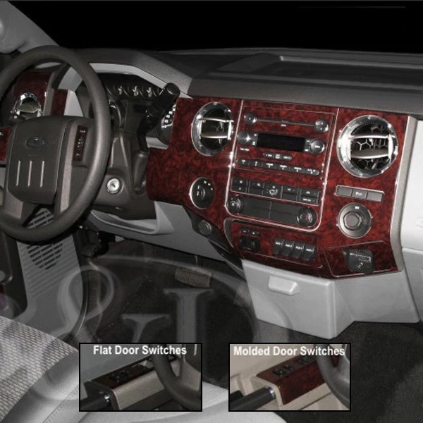 Installation of a 2D Premium Dash Trim kit from B&I transforms your plain old vehicle interior and makes it exciting and elegant. Choose trim in real or synthetic wood, real or imitated carbon fiber, metal or solid colors, to cover the areas that the manufacturer of your vehicle left bare. The B&I 2D dash kits feature a 3M adhesive backing that does not require messy primer. The adhesive does not stick permanently until it has cured, which allows you to reposition components that have not been placed with the precision you desire, without creating a mess. The real wood components are made with seamless wood. Edges are laser blackened to give a smooth visual transition to the original panels behind the trim.