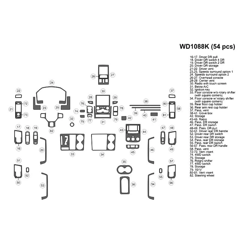 2D Finish Real Carbon Fiber Large Dash Kit (WD1088K-CF1) by B&I®. 54 Pieces. Installing a dash kit from B&I is the perfect way to make a drab standard vehicle interior inviting and attractive. The high quality, perfect fit and easy installation make it easy to create an individualized and luxurious vehicle interior.