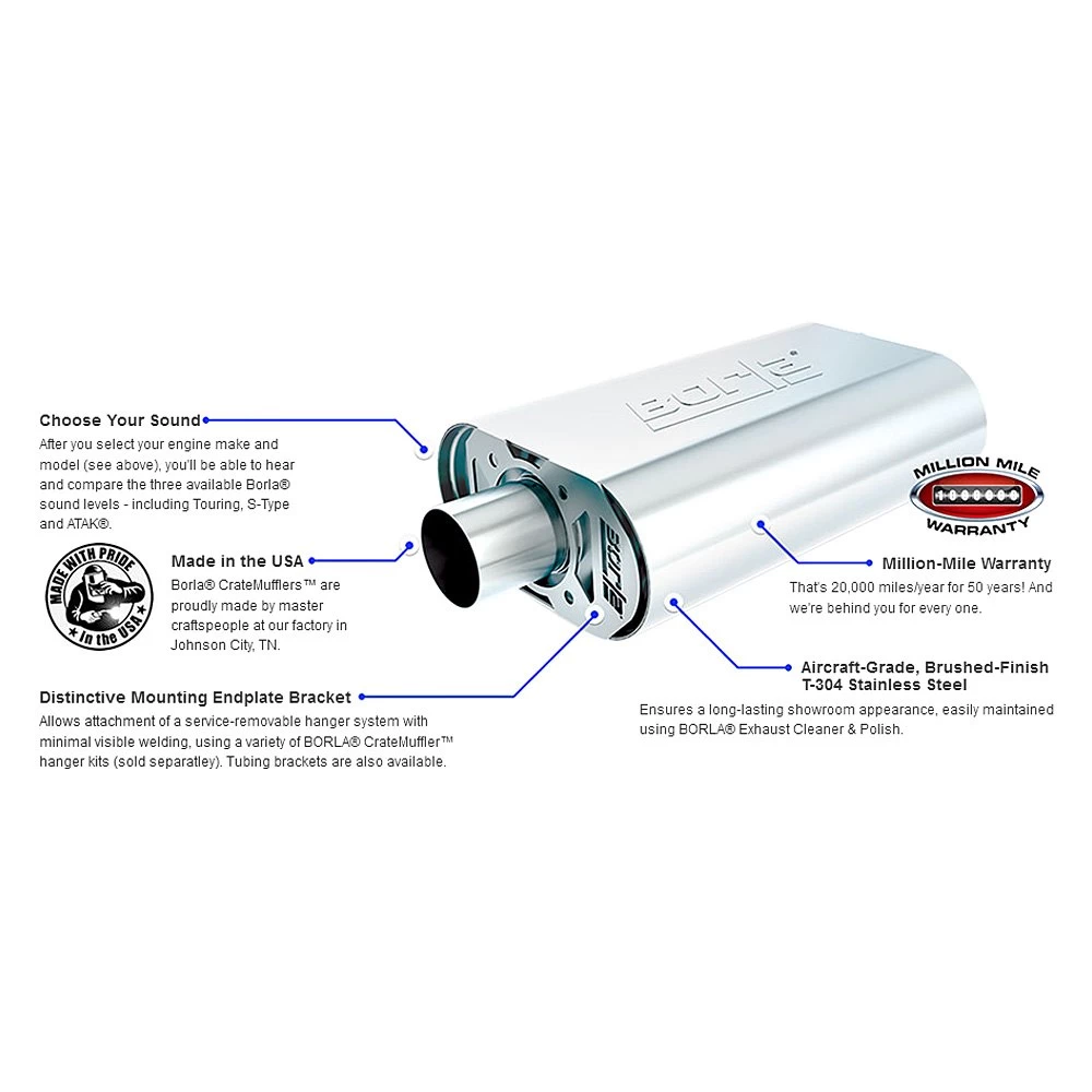 Borla® 400943 – ATAK™ Stainless Steel Oval Crate Gray Exhaust Muffler