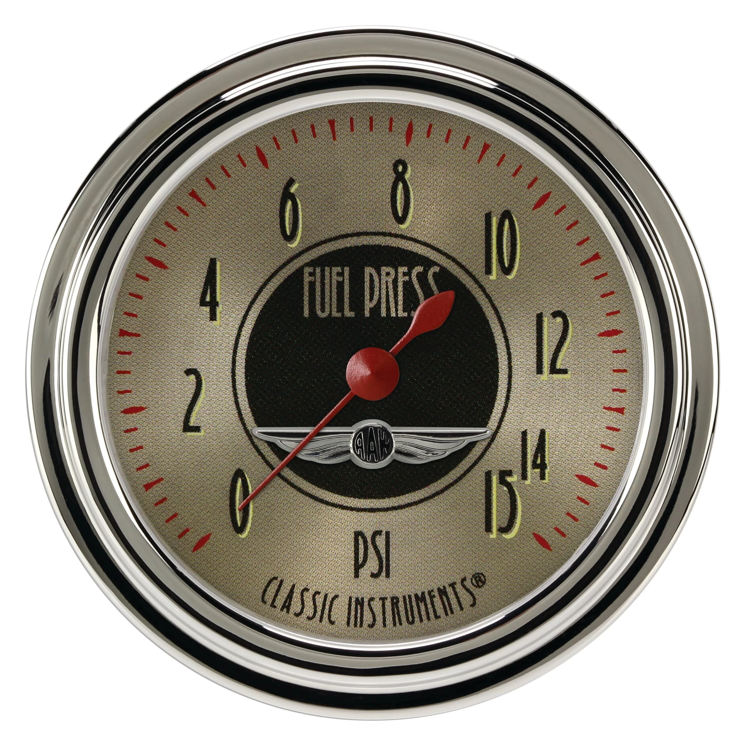 Universal All American Nickel Series 2-5/8″ Fuel Pressure Gauge, 15 psi (AN345SLC) by Classic Instruments®. Gauge Diameter: 2-5/8″. Range: 15 Psi. Bezel Type: Stainless Low Step. Lens Type: Curved. This top-grade All American Nickel Series Fuel Pressure Gauge by Classic Instruments is expertly made in compliance with stringent industry standards to offer a fusion of a well-balanced design and high level of craftsmanship. Manufactured from industry-leading materials using up-to-date equipment, it ensures everlasting reliability and enduring value. With new and original designs to meet the unique needs of the automotive enthusiast, Classic Instruments continuing research and development assures its customers of always having the finest in design, quality, technology, and good looks available to the hot rod customer.