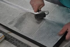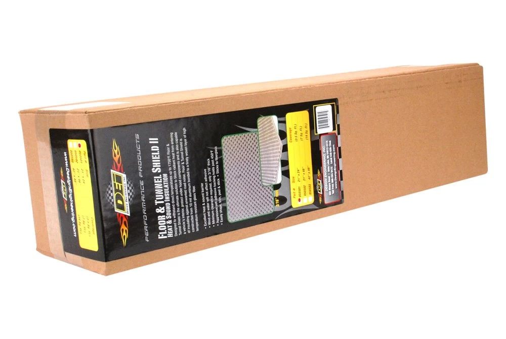 Universal Floor and Tunnel Shield II (050520) by Design Engineering®. Without Adhesive Backing. Finish: Silver. Size: 48″ x 42″. Square: 14 Sq. Ft. Use as a barrier to reflect and insulate from any heat source. Designed to provide the best possible heat protection in areas where high temperatures are always present and problematic, Floor & Tunnel Shield II limits heat transfer on fire walls, transmission tunnels, floor boards, fuel cells and other areas where heat is an issue. Floor & Tunnel Shield II provides excellent light weight thermal protection, acts as a guard against track and road debris, and provides sound deadening as well. Constructed with an embossed 10 mil aluminum face bonded to 1/8in composite glass-fiber core, Floor & Tunnel Shield II withstands up to 1750°F of direct continuous heat. Its improved multifaceted modern aluminum surface offers improved reflection and rigidity and allows for ease of installation – aluminum side must face the heat source. At only 3/16? thick, this product can be shaped and trimmed for a custom fit and is ideal for minimal clearance areas. With a unique and patented finely woven glass-fiber backing, Floor & Tunnel Shield II is the easiest, most cost effective way to control thermal transfer while protecting expensive components and vehicle occupants from extreme heat situations and sound. Floor & Tunnel Shield II can be used on any number of surfaces including, metal, aluminum, carbon fiber, plastic, and more. Multiple uses include: fire walls, under hoods, transmission tunnels, floor pans, fuel cells, and exterior under vehicle locations – anywhere to reflect damaging heat.