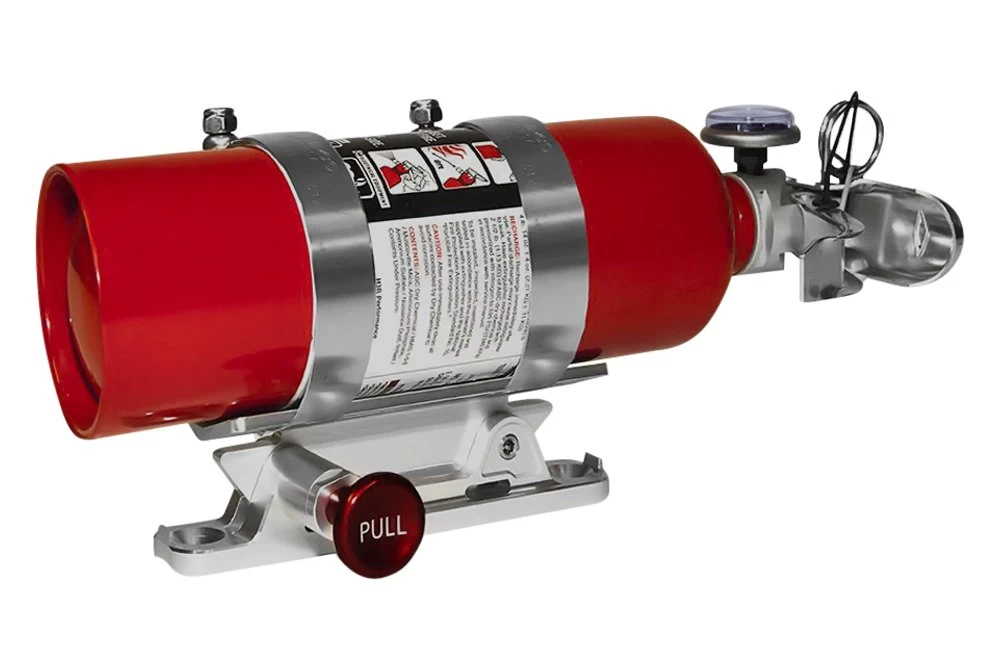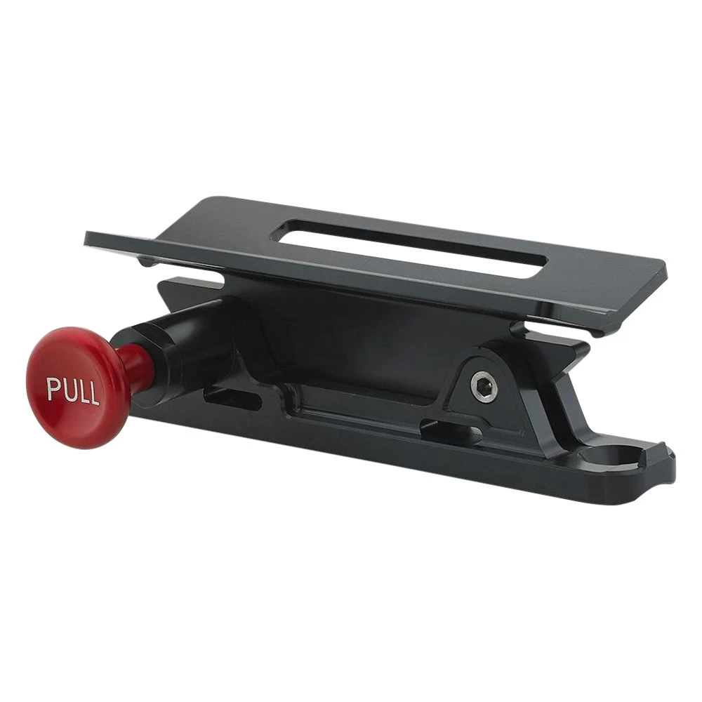 Universal Quick Release Fire Extinguisher Mount by DV8 Offroad®. NHRA-approved, this quick release fire extinguisher mount is Baja-proven! It features CNC-machined 6061-T6 billet aluminum construction with a red, anodized, quick release pull knob. It can be installed in just about any location including under the seat and roll-bars.