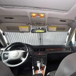 Sun Shade (10619) by Eclipse Sun Shades®. Color: Silver. Length: 19″. Includes all necessary mounting hardware. Protect your vehicle with the original Eclipse Sun Shade. The Eclipse Sun Shade is made of a pleated, non-woven metallic fabric. This material is designed to protect the interior of your car and keep it cooler during hot days. Protection – Eclipse Sun Shades protects your vehicles interior from sun damage. Cooling – Eclipse Sun Shades help keep your car cooler by blocking out the heat of the sun. Self Storing – Eclipse Sun Shades are self-storing and self-retracting making them convenient to use.