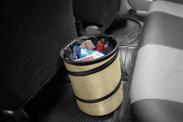 Universal Large Beige Collapsible Trash Can (CIFH1121-BEIGE) by FH Group®. Dimensions: Large (9.5″x 12″). A trash can for your car? Not ideal. But then again, neither is trash all over your floor. Enter this compact collapsible crafty can. Springs open when you need it, basically invisible when you don’t.