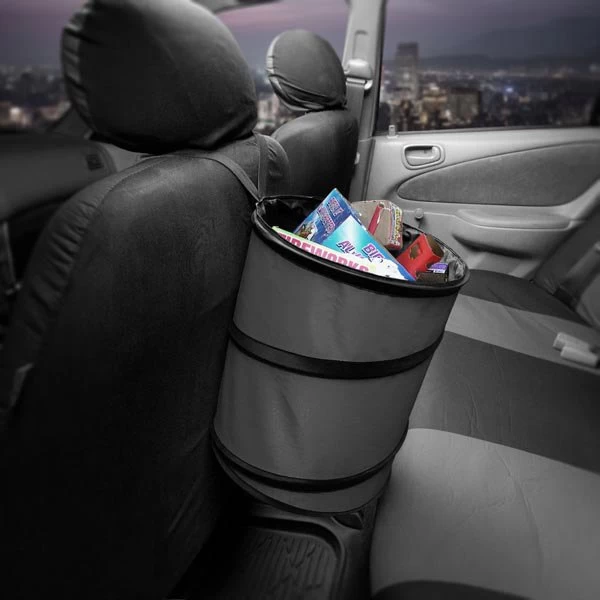 Universal Large Gray Collapsible Trash Can (CIFH1121-GRAY) by FH Group®. Dimensions: Large (9.5″x 12″). A trash can for your car? Not ideal. But then again, neither is trash all over your floor. Enter this compact collapsible crafty can. Springs open when you need it, basically invisible when you don’t.