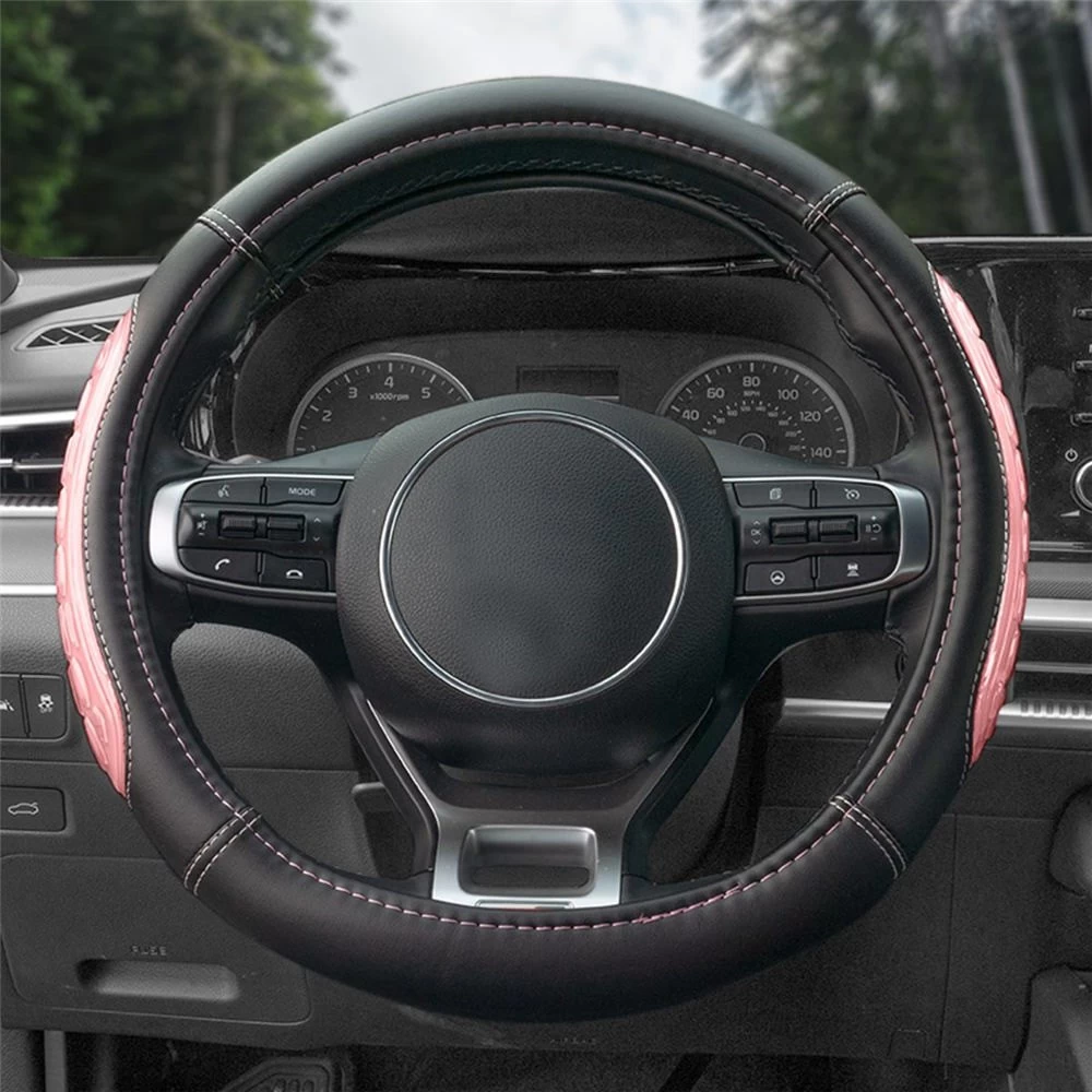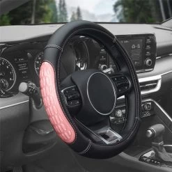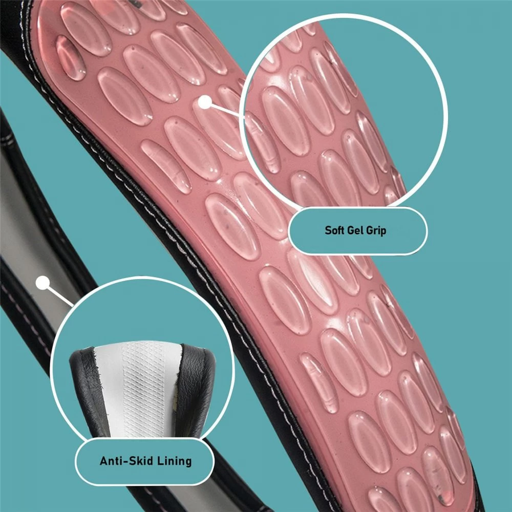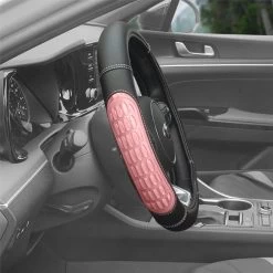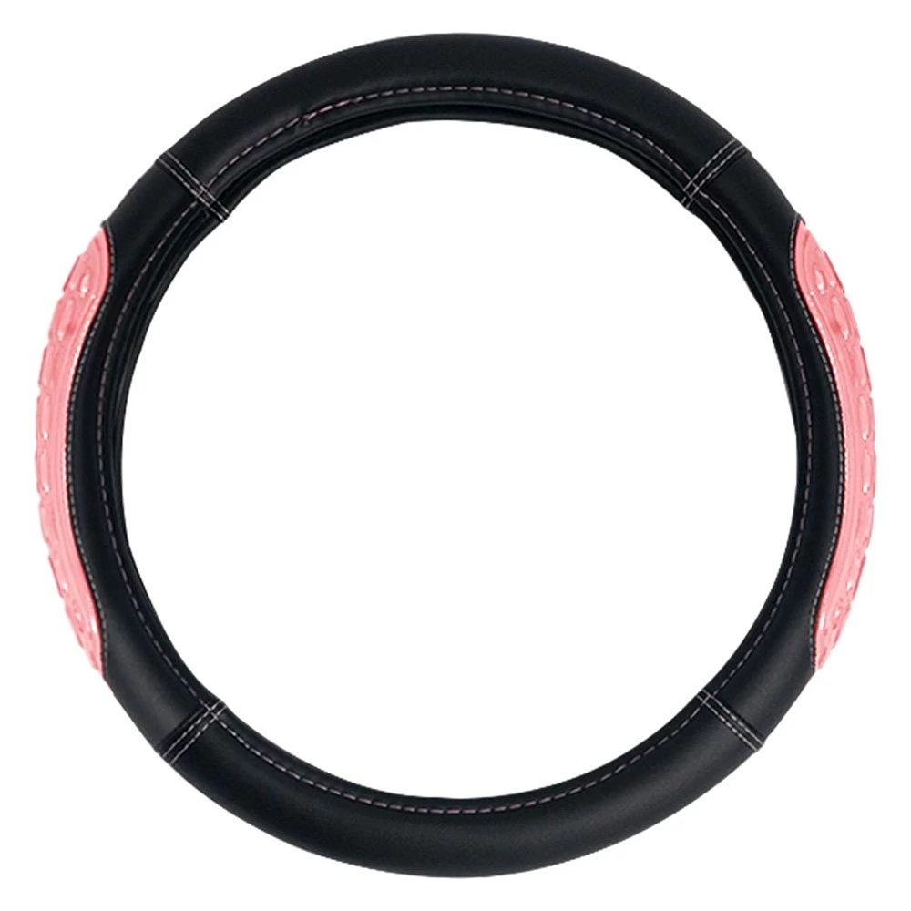Ultra Grip Silicone and Faux Leather Pink Steering Wheel Cover (CIFH2012-PINK) by FH Group®. The buttery softness of vegan leather plus cooling silicone gel equals one heck of a treat for hands. Steering wheel cover made from premium faux leather not only delivers a luxe finish; FH has thrown in textured silicone to pamper your paws with a comfy, secure grip.