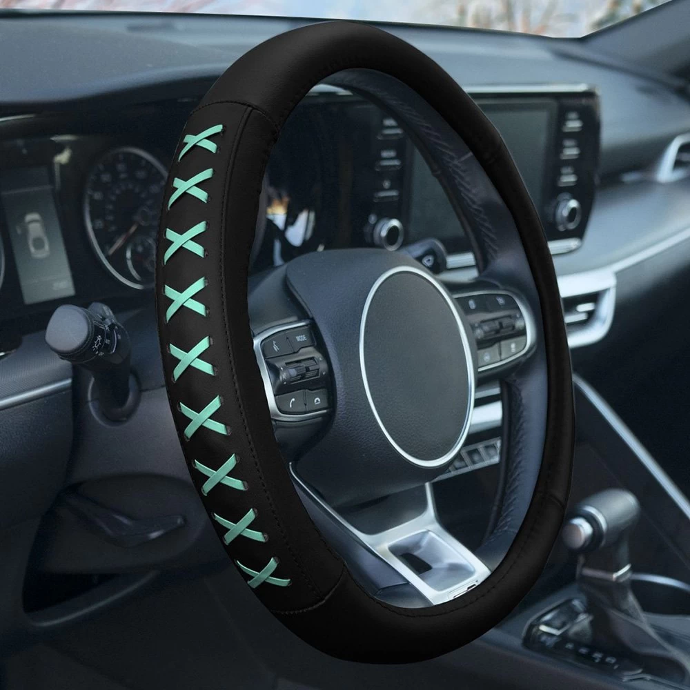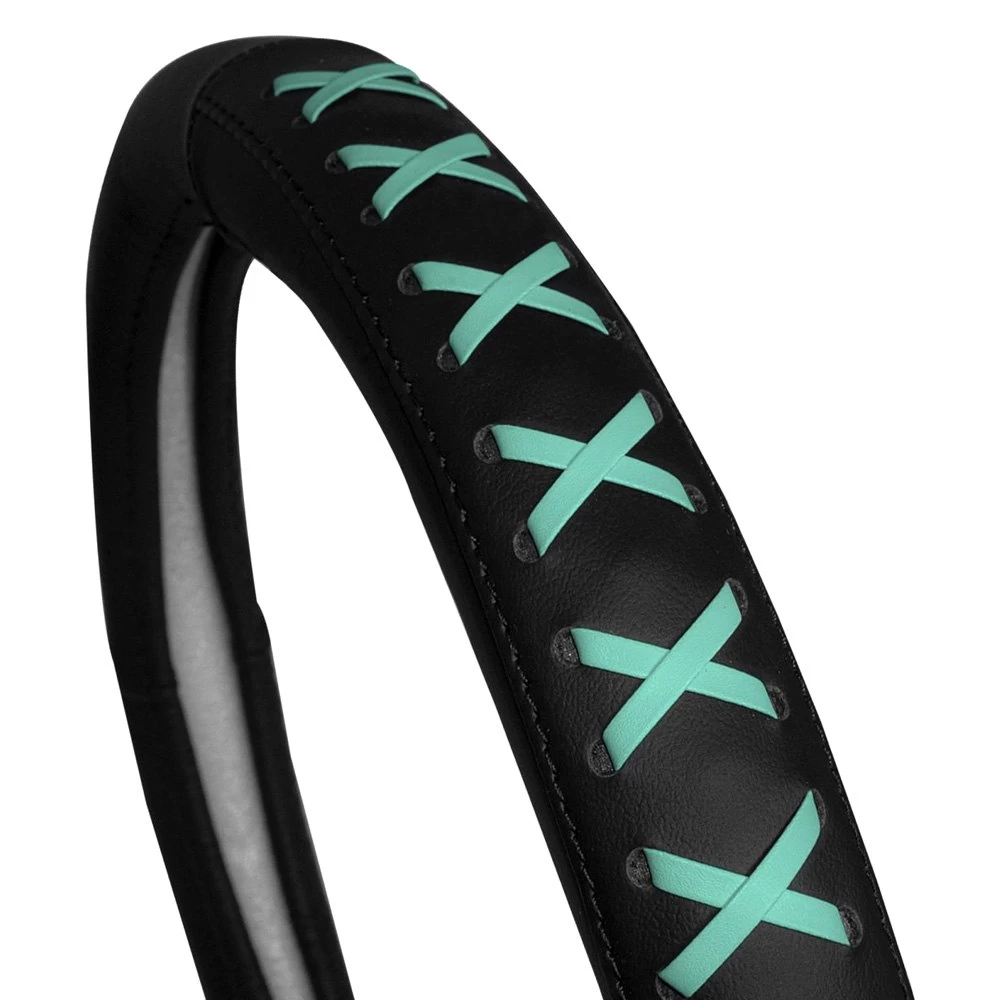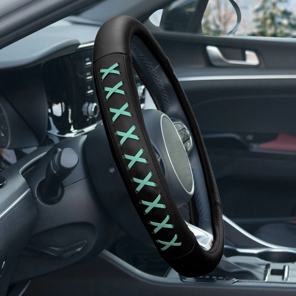Genuine Leather Lace-Up Mint Steering Wheel Cover (CIFH2022-MINT) by FH Group®. Upgrade your steering wheel and save it from UV damage with protection that looks as good as it feels. We’ve laced these genuine leather covers with juicy color, pairing bold style with luxe comfort. The cover’s universal frame features a solid build and smooth hand that delivers a factory-fresh finish.