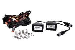 Universal C-Series 3″ 2x20W Cube Flood Beam LED Backup Lights (519) by KC HiLiTES®. 1 Pair, 4-LED. Black housing, white light. 9V-32V. The KC C-Series 3″ 20W Cube Light combines optical LED performance, rigid and strong construction, and extreme affordability. The C2 LED Light can be mounted in the A pillar and bumper to provide superior LED illumination for your off-road lighting needs. It features an IP67-rated housing with thermal management for maximum light output and efficiency.