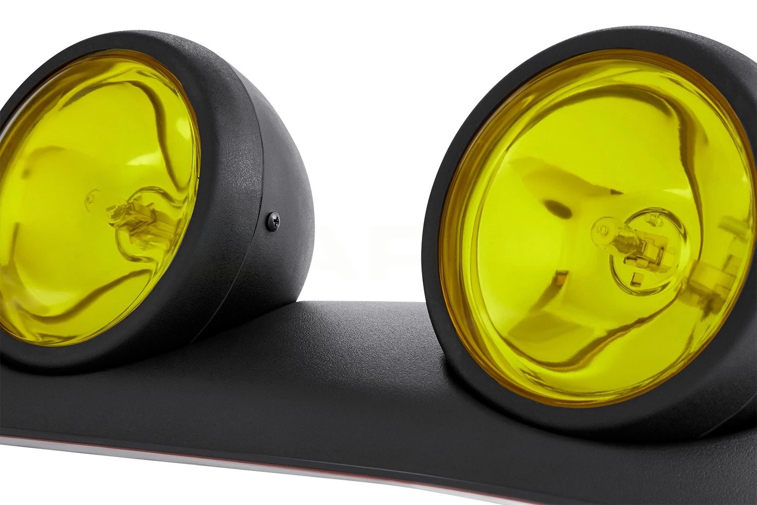Universal Round Roof Fog Light (86-1001609) by Lumen®, 1 Piece. Yellow lens. Bulbs: H3 (included). These Lumen roof fog light increases visibility during heavy rain, snow, fog and night time driving.It is designed as direct bolt-on replacement part. The light features 4 fog lights built in the impact-resistant bar for maximum visibility.