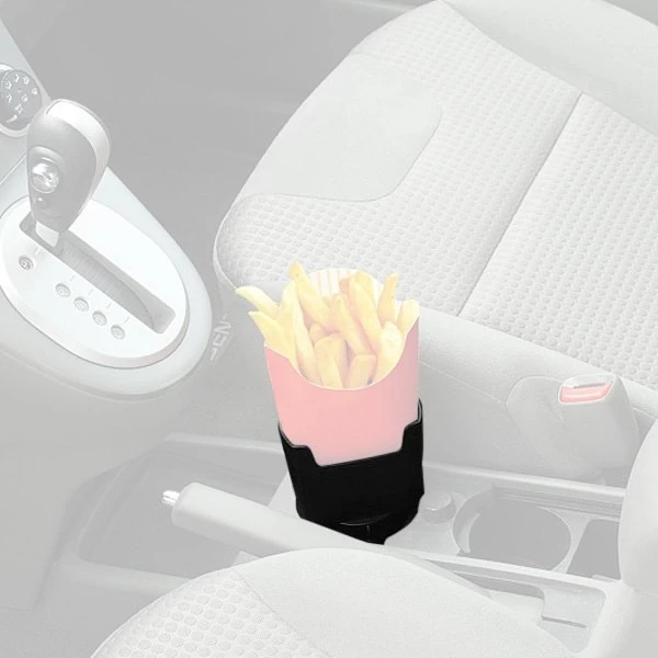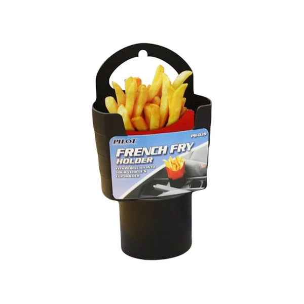 Universal French Fry Holder by Pilot®. These innovative products are designed for practical use, maximizing on the limited space in todays vehicles. ABS plastic accessory that fits in the console of your car, truck or RV. This accessory will hold French fry containers of each size that are used by most fast food chains. The container also holds juice boxes or juice pouches will also hold, childrens crayons and markers and other items.