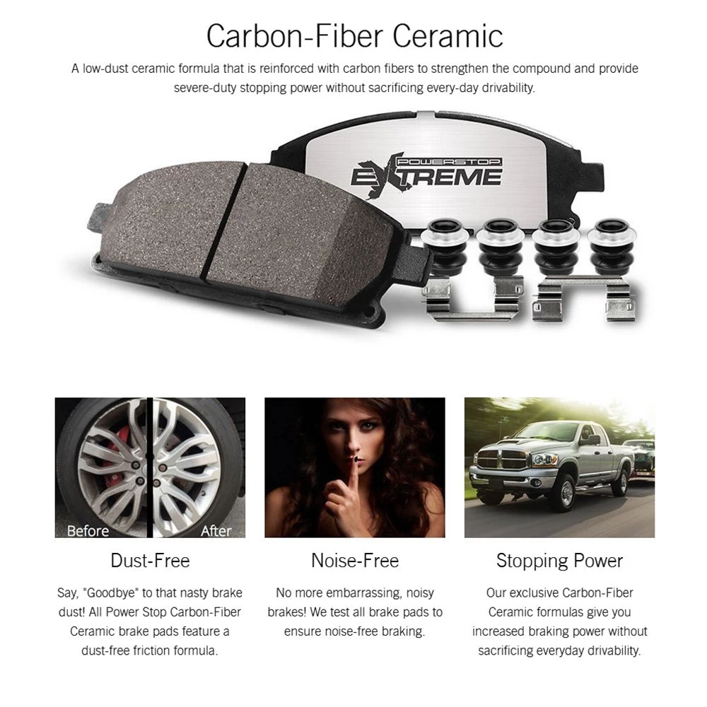 Z36 Extreme Truck and Tow Carbon-Fiber Ceramic Front Brake Pads by Power Stop®. If you drive your truck like a truck, by hauling loads or towing, then you need the extra stopping power of Power Stop’s Z36 Truck and Tow brake pads. Go ahead and max out your vehicle weight. Ditto for the trailer. Now go tow through some hilly country. With stock pads, on many trucks, you’ll be chewing on your fingernails on every downhill.