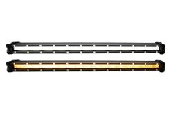 Universal LoPro 26″ 120W Ultra Slim Spot Beam White/Amber LED Light Bar (RSLP26) by Race Sport®. 1 Piece, 24-LED. Black housing. 12-24V. 6500K. With durable polycarbonate lens. These Hot new LoPro Dual Function LED Light Bars are exactly what you need for the best of both worlds of onroad and offroad. Use the Lo power amber running marker lights as onroad, and the white hi power LED’s as offroad when needed. The Ultra Slim Design is the thinnest in the world, and still puts out more LUX output than most larger dual rows. You will not be disappointed with the performances of this light bar, and you will be turning some heads while driving.