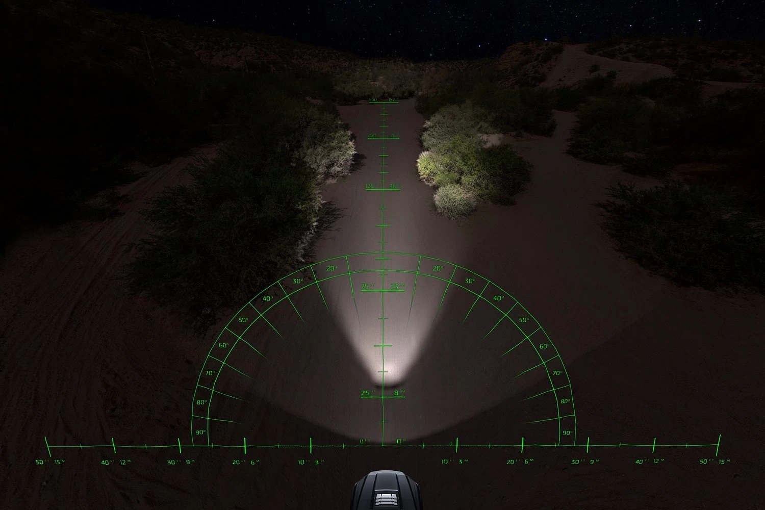 These SR-Q Series Pro LED lights feature a driving beam pattern. The driving version of Rigid Industries Specter optics system is designed to project light that is not only far, but also wide. Driving lights use a narrow, oval-shaped reflector that projects both spot and flood beam patterns. Unlike a conical beam, this technology creates an oblong beam that maintains a bright center hot spot, as well as incredible horizontal dispersion.