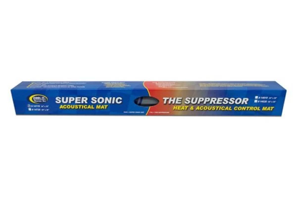 Universal Super Sonic Acoustical Mat (14700-12) by Thermo-Tec®. Size: 12″ W x 33 1/2′ L. 1 Piece. This high quality mat offers superior sound dampening control to reduce road noise, rattles, engine noise, and any other noises that are bothersome. The high density polyethylene film with an aluminum foil composite is abrasion and tear resistant. The gray film provides structural integrity & strength, allowing the material to bend, move, & return to shape even under tension forces. The product contains a high temperature adhesive backing, and is easy to trim & fit. The rubberized compound is applied with the high temperature adhesive to absorb all those out of control noises.