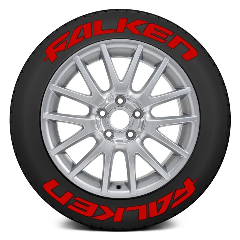 Universal Red “Falken” Tire Lettering Kit (FAL-1921-75-8-R) by Tire Stickers®. Wheel Size: 19″-21″. Decal Height: 0.75″. Quantity: 8 Decals. Location: Top and Bottom. Type: Permanent, Rubber Lettering. Permanent Tire Stickers are designed for the most demanding conditions and to last the lifetime of the tire. Raised rubber lettering style Tire Stickers are ideal for maintaining a high quality look and lasting bond under daily driving conditions. This tire letter kit provides a durable bond and quality appearance lasting the lifetime of the tire, perfect for daily drivers. Kit is fully cleanable even after 40,000+ miles of intense driving. Each Raised Rubber Letter Kit includes a specially designed tire adhesive and instructions for application and removal. This top-grade product is expertly made in compliance with stringent industry standards to offer a fusion of a well-balanced design and high level of craftsmanship. Manufactured from industry-leading materials using up-to-date equipment, it ensures everlasting reliability and enduring value. This product is distinguished by total quality assurance, unsurpassed by anybody else.