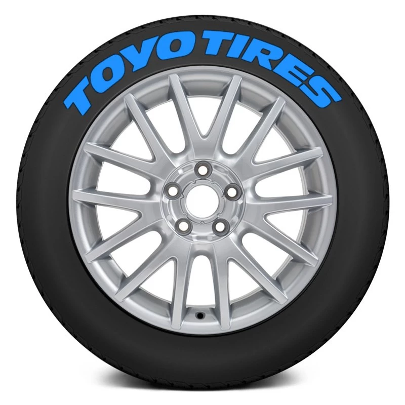 Universal Blue “Toyo Tires” Tire Lettering Kit (TOYTIR-1416-125-4-B) by Tire Stickers®. Wheel Size: 14″-16″. Decal Height: 1.25″. Quantity: 4 Decals. Location: Top Only. Type: Permanent, Rubber Lettering. Permanent Tire Stickers are designed for the most demanding conditions and to last the lifetime of the tire. Raised rubber lettering style Tire Stickers are ideal for maintaining a high quality look and lasting bond under daily driving conditions. This tire letter kit provides a durable bond and quality appearance lasting the lifetime of the tire, perfect for daily drivers. Kit is fully cleanable even after 40,000+ miles of intense driving. Each Raised Rubber Letter Kit includes a specially designed tire adhesive and instructions for application and removal. This top-grade product is expertly made in compliance with stringent industry standards to offer a fusion of a well-balanced design and high level of craftsmanship. Manufactured from industry-leading materials using up-to-date equipment, it ensures everlasting reliability and enduring value. This product is distinguished by total quality assurance, unsurpassed by anybody else.