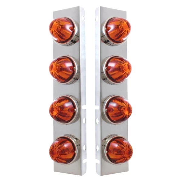 Front Air Cleaner Chrome Dark Amber Parking Lights with 8 x Glass Watermelon Lights (30983) by United Pacific®. 1 Pair. Dark Amber lens. With Stainless Steel Bracket. Location: front air cleaner. With Stainless Bezels. This product is made of high-quality materials to serve you for years to come. Designed using state-of-the-art technology and with customers in mind, this product by United Pacific will last a lifetime. It will meet your needs and deliver great quality at an affordable cost.