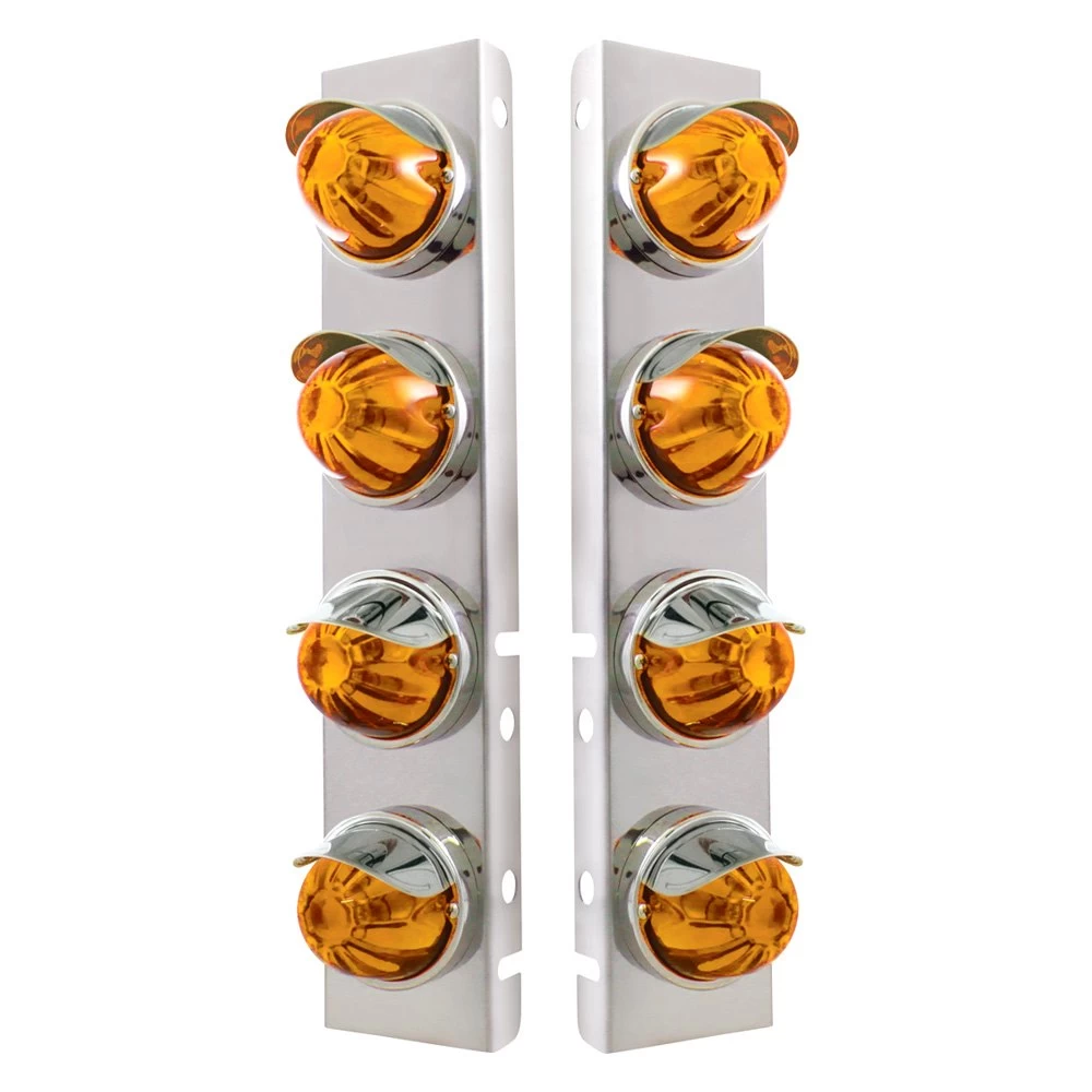 Front Air Cleaner Chrome Amber Parking Lights with 8 x Glass Watermelon Lights (30986) by United Pacific®. 1 Pair. Amber lens. With Stainless Steel Bracket. Location: front air cleaner. With Stainless Visors. This product is made of high-quality materials to serve you for years to come. Designed using state-of-the-art technology and with customers in mind, this product by United Pacific will last a lifetime. It will meet your needs and deliver great quality at an affordable cost.