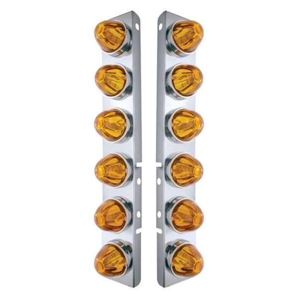 Front Air Cleaner Chrome Amber Parking Lights with 12 x Glass Watermelon Lights (30998) by United Pacific®. 1 Pair. Amber lens. With Stainless Steel Bracket. Location: front air cleaner. With Stainless Bezels. This product is made of high-quality materials to serve you for years to come. Designed using state-of-the-art technology and with customers in mind, this product by United Pacific will last a lifetime. It will meet your needs and deliver great quality at an affordable cost.