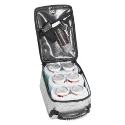 Universal Silver Road Chill Six Pack (9621) by VDP®. Comes with 2 chillers for 4 cans and insulated divider for food. Also, inside zippered storage and outside storage pouch. Deluxe shoulder strap makes it easy to carry.
