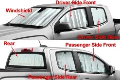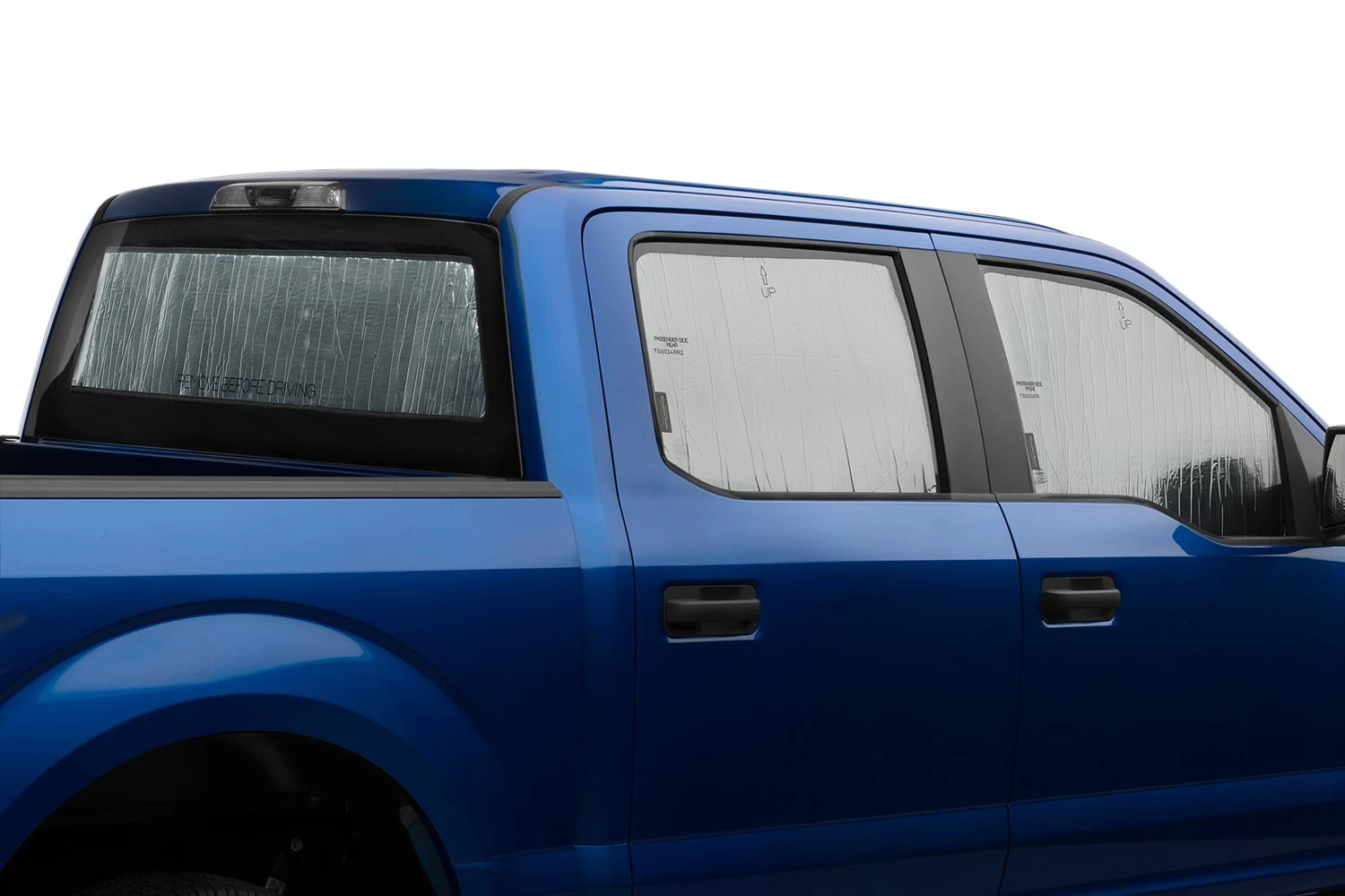 Full Vehicle Sun Shade Kit (TS1297K1) by WeatherTech®. Color: Silver/Black. 6 Pieces. Includes: windshield sun shade, 4 side window sun shades, and rear window sun shade. SunShade is custom fit for your vehicle’s windows to keep harmful UV rays from ruining your interior. Its dual-purpose design helps keep vehicles cool in the summer, and in the winter, also helps warm up interiors and avert frost build-up.