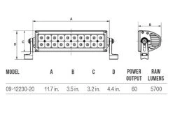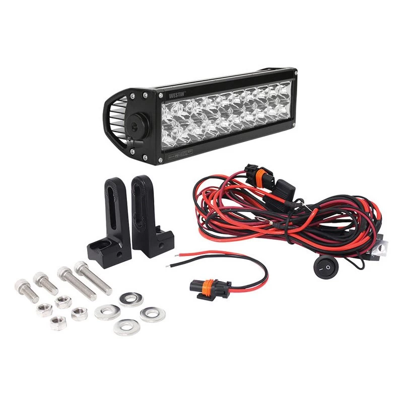 Universal Performance-2X Series 10″ 60W Dual Row Flex Beam LED Light Bar (09-12230-20S) by Westin®. 1 Piece, 20-LED. Black housing, white light. 9-30V. Beam distance: 3775m. 3.4A. Effective lumens: 4200. Aluminum. This Westin Performance-2X Series LED Light Bar features extruded aluminum housing with die-cast ends and a dust and moisture-resistant lens.