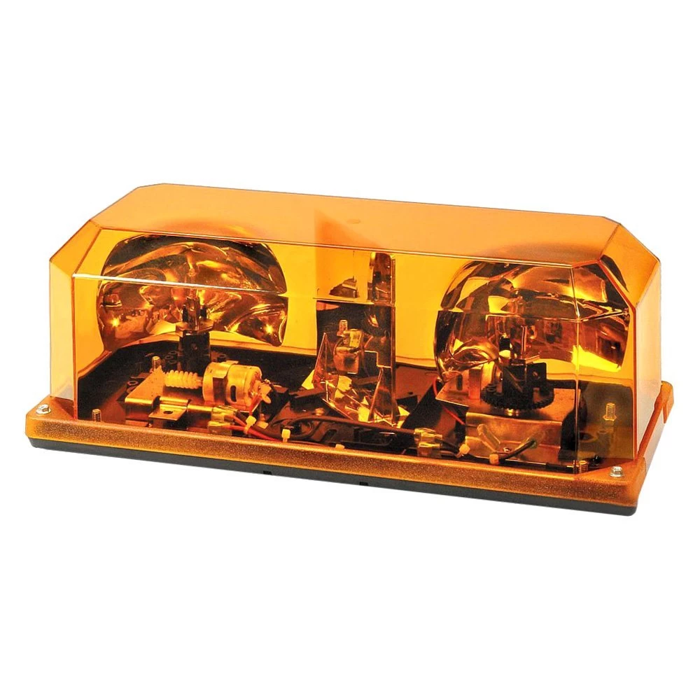 Universal Priority™ 1 Mini Rotating Halogen Beacon Light Bar by Wolo®. PRIORITY 1 MINI BAR LIGHT is a true 360° warning light built with two (2) gear-driven rotating lights that flash 75 FPM. Built with a diagonal mirror between the warning lights for more visibility. The replaceable lens is constructed of strong Polycarbonate. Priority 1 is designed for the user that requires a mini light bar for heavy-duty use. The two (2) H1/55-watt halogen bulbs, included and installed, can be seen in bright day light. Made for all weather conditions, maintenance free. Will provide the user years of dependable service. Includes a 7 ft. heavy-duty power wire with a cigarette lighter plug an internal fuse, four (4) powerful magnets rubber covered to protect the vehicle’s paint.
