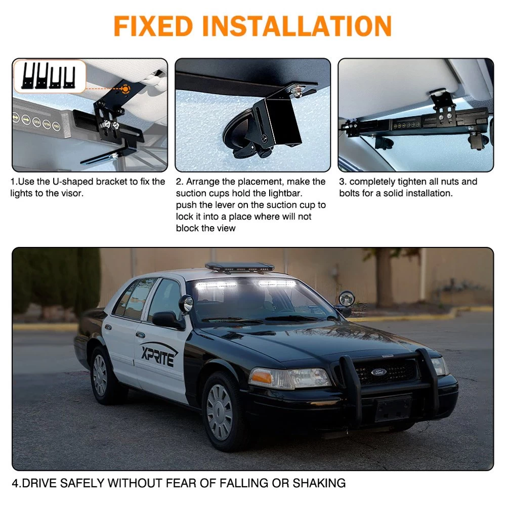Universal Chaser Series 20.1″ Blue Suction Cup Mount LED Visor Light (YL-145-G1-B) by Xprite®. 1 Piece. 12-24V DC. Cigarette lighter plug. New Chaser Series features upgraded LEDs for a boost in brightness and more patterns to suit your needs.